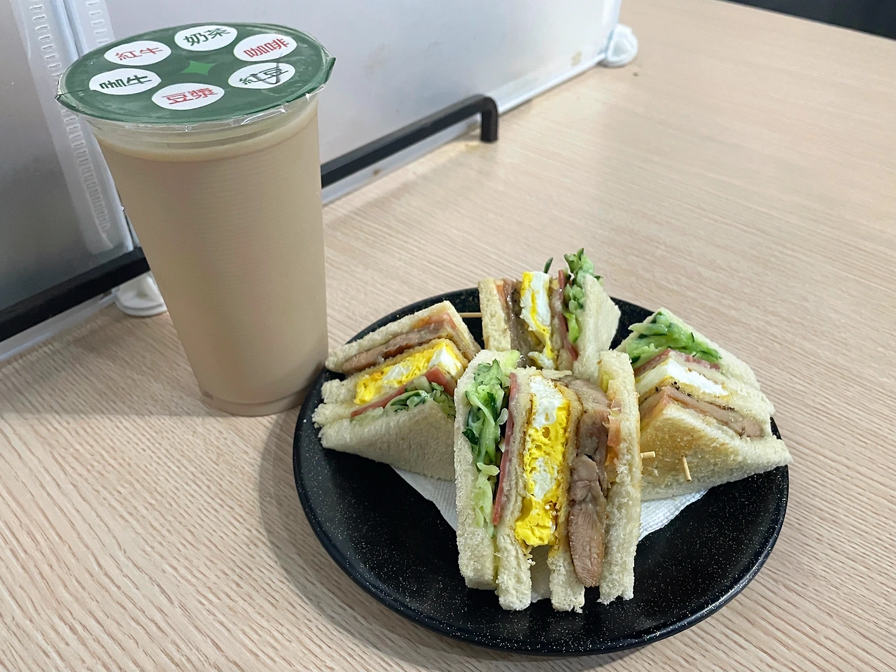 이곳에서 파는 다양한 아침 메뉴 중에서 클럽 샌드위치(總匯 三明治)가 아주 맛있는데