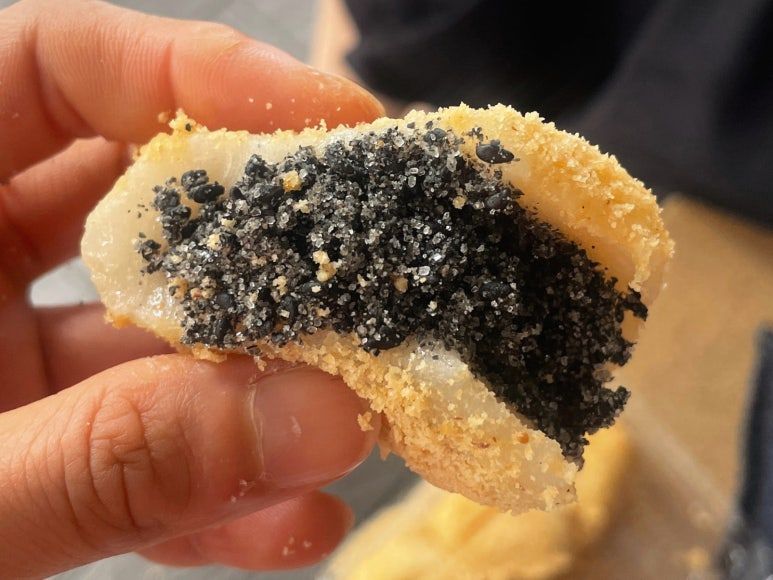 겉 부분의 떡보다는 이 속재료의 맛으로 먹는 떡이라고 할 수 있어요.
