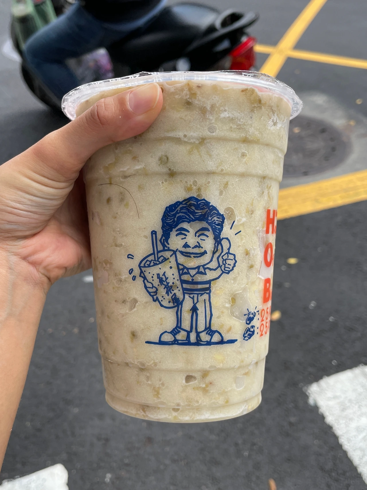녹두 스무디에 우유를 추가한 '뤼또우샤 니어우나이(綠豆沙 牛奶)'도 있는데,