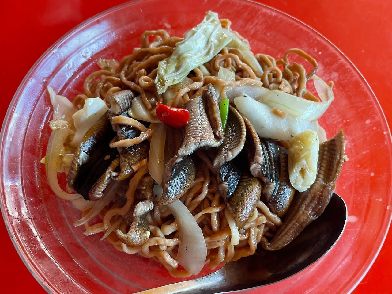 장어 볶음면은 타이난 근처에서 많이 나는 '황산(黃鱔)'이라는 장어를 면과 함께 볶은 요리로,