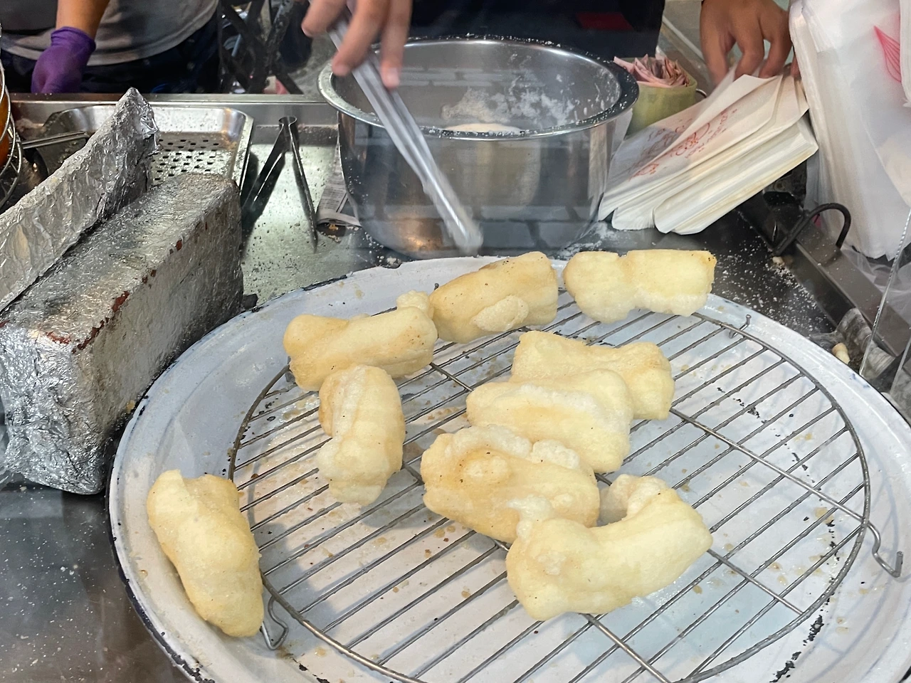 그 자리에서 갓 튀긴 바이탕궈는 겉은 바삭하고 속은 쫀득한 식감이 매력적이고