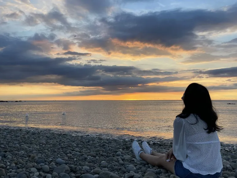 커플 또는 친구끼리 온 대만 사람들 사이에서 혼자 온 한국인은 열정적인 인증샷 촬영을 마치고 해안가로 내려갔다. 해변은 모래가 아닌 자갈로 덮여 있었다. 바지를 털어낼 필요가 없다는 사실에 기뻐하며 무거운 엉덩이를 자갈 위에 내렸다. 거제 몽돌해변의 그것과 닮은 둥근 돌들은 종일 태양열을 받아 뜨끈뜨끈했다.