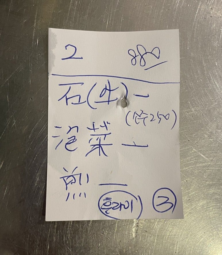아, 주문 받던 중간에 사장님을 호출했었다. 그가 주문하면서 ‘무이’가 들어가냐고 물어봤는데 하필 내가 모르는 중국어라 사장님께 SOS를 요청했었다. 못 알아듣는 내가 좀 쪽팔렸지만, 덕분에 새롭게 알았다. ‘무이(木耳)’는 ‘목이버섯’이라는 사실을. 그는 역시 나의 중국어 선생님이었다.