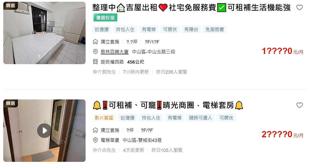 또 하나의 방법은 '591'이라는 사이트를 이용하는 것이었다. 591은 우리나라의 직방처럼 주로 부동산 중개인들이 매물을 올리는 사이트였는데, 그만큼 방 자체는 많았지만 역시나 내가 원하는 저렴한 가격의 깔끔한 방은 거의 없었다. 가아끔 괜찮아 보이는 방이 있어도 부동산 중개인에게 문자나 전화로 직접 연락할 용기가 없는 나에겐 문자 그대로 그림 속의 떡이었다.