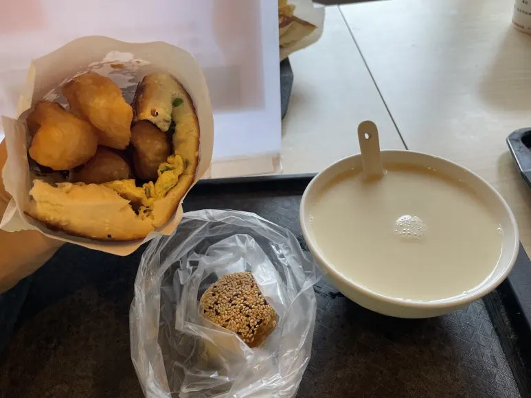 어학당 수업이 다 끝나고 며칠 뒤에는 선생님과 같이 대만식 아침 식사 모임을 가지기도 했다. 종강이 아쉬워 급 결성된 모임이었다. 우리는 타이베이에서 가장 유명한 아침 식사 가게인 '푸항또우장(阜杭豆漿)'에서 만났는데, 코로나로 외국인 여행객들이 없는데도 어찌나 현지인 손님들이 많던지 30분 넘게 기다려야 했다. 만약 혼자였다면 '안 먹고 말지' 하고 포기했겠지만 선생님 그리고 통쉐들과 함께 그동안 쌓아뒀던 이야기를 하다 보니 기다림도 즐거웠다. 그리고 이날 먹었던 또우장(豆漿)과 샤오삥(燒餅)은 대만에서 먹었던 것 중에 제일 맛있었다. 유일하게 혼자 먹지 않았던, 그래서 더 든든했던 아침 식사였다.