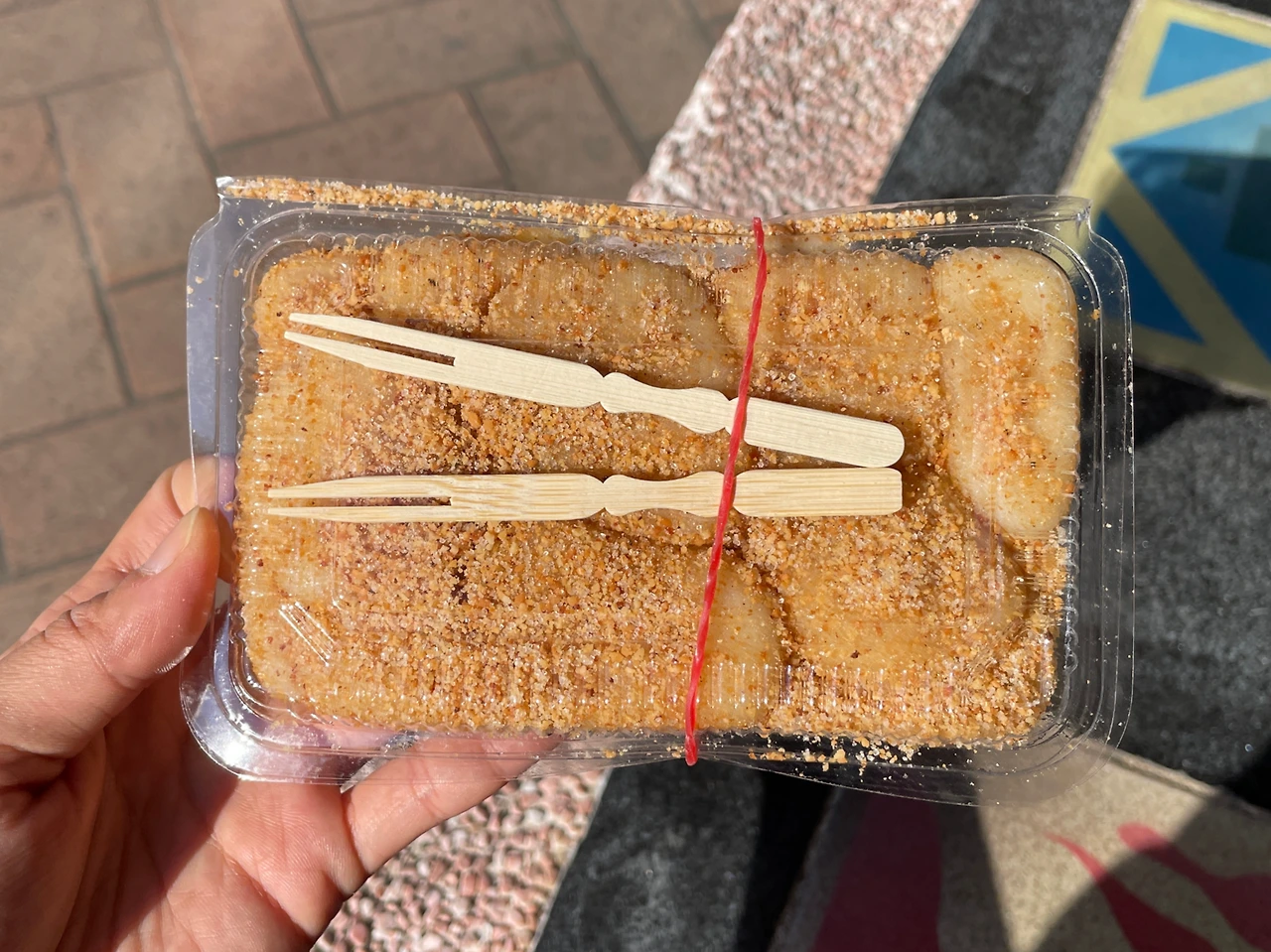 젊은 아빠와 초등학생으로 보이는 딸이 즉석에서 고물을 묻혀 팔고 있었는데, 그 모습을 보니 (미혼이지만) 엄마 미소가 절로 지어졌다. 한 팩에 50위안(약 2천 원). 이 돈이면 고슴 그릇 하나 더 살 수 있는데, 하며 고민하다 결국 한 팩 구입했다. 고슴이 찾느라 기가 잔뜩 빨린 상태였기에 에너지 보충이 필요하기도 했다.