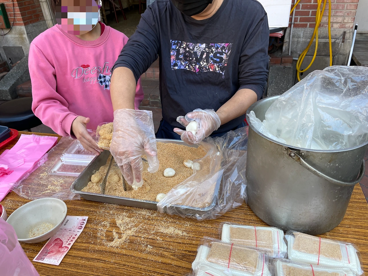 가벼운 지갑과 무거운 가방을 들고 다음 목적지로 향하던 길, 라오지에 끝자락에서 내가 사랑하는 간식을 마주치고야 말았다. 부드러운 인절미에 고소한 땅콩 가루를 드음뿍 묻힌, 대만 객가(客家)족의 떡, 마쑤(麻薯)였다.