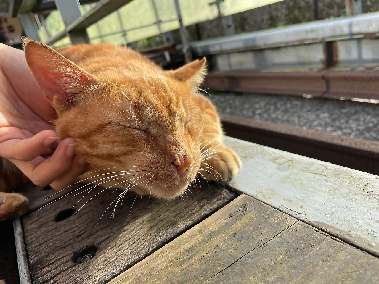 고양이들과 호젓한 한 시간을 보내고 다시 버스 타러 가는 길. 그늘 아래 쉬고 있던 치즈냥이를 마주쳤다. 몇 년 전 부모님 집에서 길렀던 냥이와 꼭 닮은 얼굴이었다. 조심스럽게 손을 내미니 얼굴을 비비며 다가왔다. 예상대로 개냥이였다. 살살 턱을 만져주니 골골송을 부르기 시작했다.