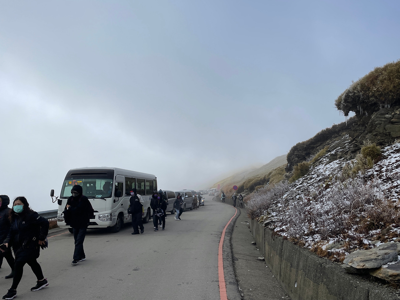 눈 덮인 언덕 앞에서 해맑게 웃는 사람들의 모습이 눈에 들어왔다. 아이건 어른이건 할 것 없이 다들 세상에서 가장 행복한 미소를 짓고 있었다(진짜 산까지 못 올라가냐는 질문에 시달리는 경찰관들 제외하고). 사람들의 웃음소리를 듣고 있으니 내 마음도 콩닥콩닥 설렜다. 이들 중 누군가는 눈을 생전 처음으로 보는 걸지도 몰랐다. 겨울에도 영하로 안 내려가는 대만에선 이런 높은 산 아니면 눈이 안 올 테니까.