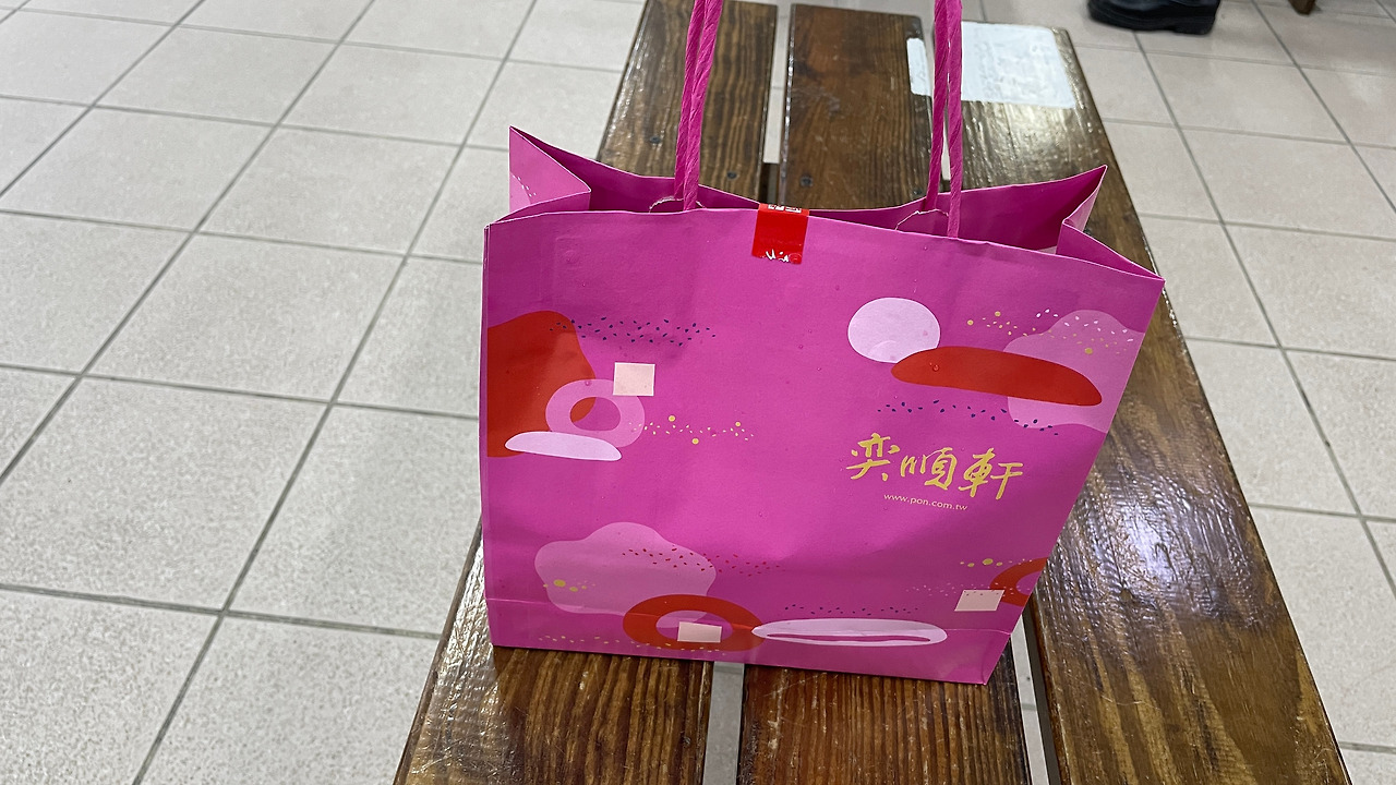 (좌) 이슌쉬엔의 쇼핑백 / (우) 시그니처 제품인 타로 푸딩 롤케이크