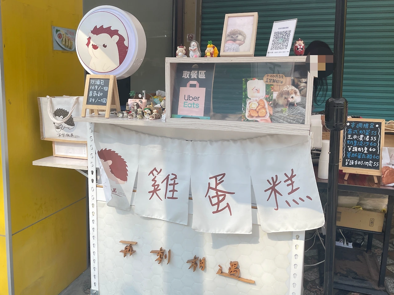 인스타그램에 나와 있는 주소로 찾아가니 횡단보도 건너편에 ‘鷄蛋糕’라고 적힌 현수막이 보였다. 그리고 그 옆에는 나를 이 구석진 동네까지 찾아오게 한 장본인이 그려져 있었다. 중국어로 츠웨이(刺蝟), 한국어로는 고슴도치였다.