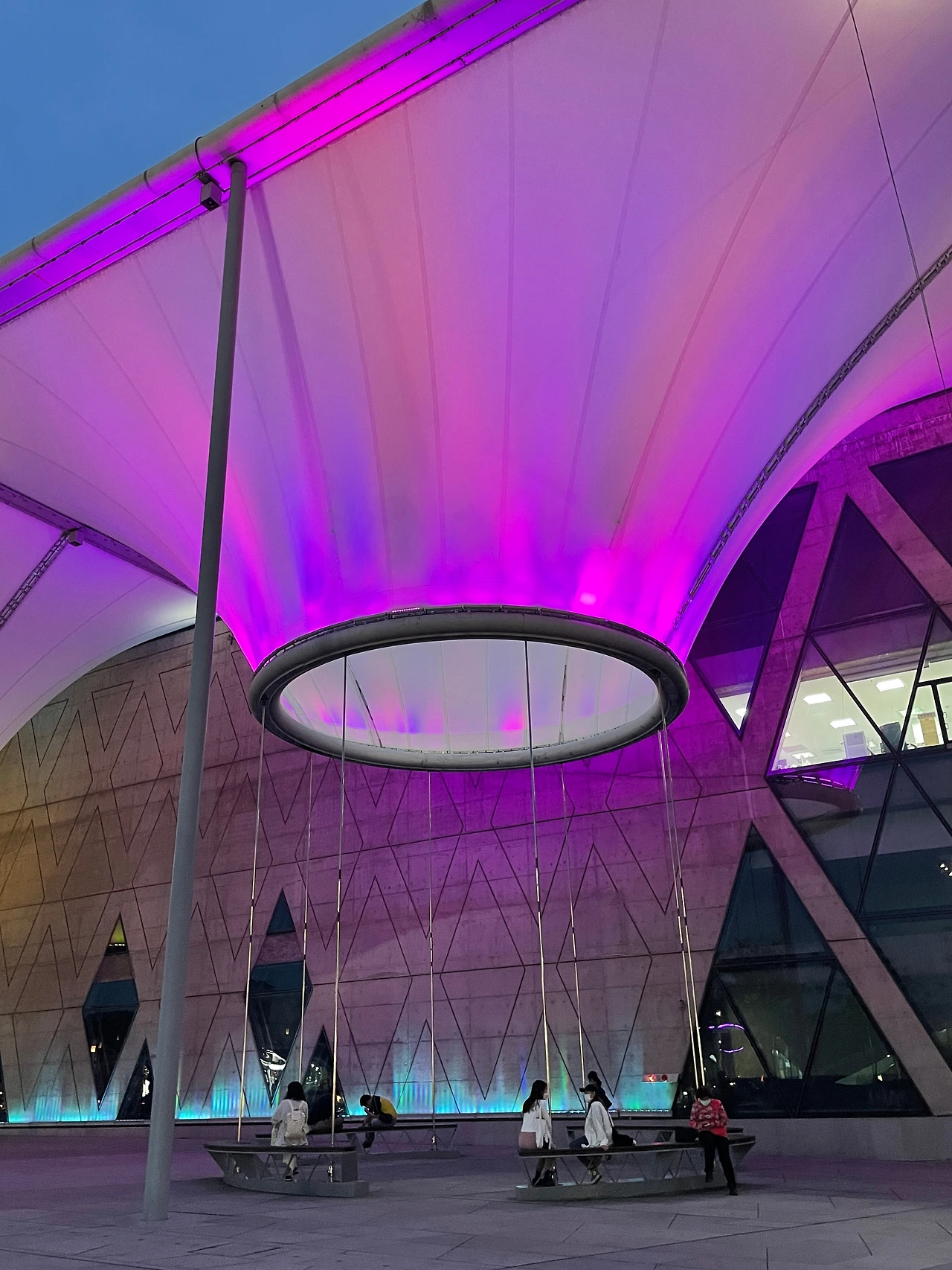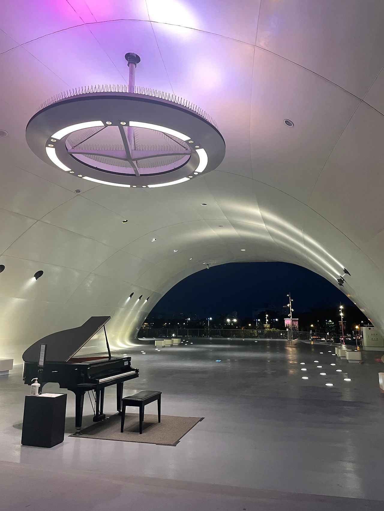 웨이우잉은 사진보다 실물이 훨씬 웅장하고 장엄했다. 건축 쪽은 완전 문외한인 내가 봐도 뭔가 있어 보이는 멋진 건물이었다. 부드러운 곡선을 품은 건물 자체도 아름다웠지만, 보라색과 자줏빛 조명이 켜져 있으니 더 운치 있었다. 저녁에 가면 더 이쁘다던 역무원의 말대로였다.