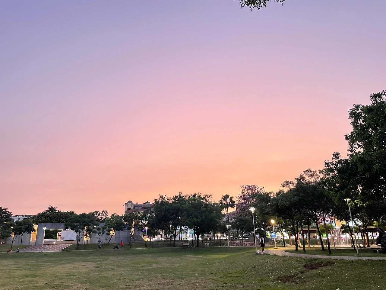 하지만 기분은 좋았다. 바로 눈앞에 대만에서 본 것 중 가장 고혹적인 노을이 펼쳐져 있었기 때문이다. 주황색과 분홍색, 보라색이 동시에 아름다움을 뽐내고 있는 하늘. 그를 올려다보며 먹으니 퍽퍽한 닭고기에서 엄마가 삶아줬던 촉촉한 백숙 맛이 나는 듯했다. 역시 야외에서 먹는 밥은 언제나 유잼이었다.