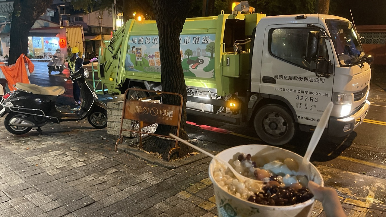 우리의 소중한 또우화를 지켜야 했다. 쓰레기 냄새가 들어가는 걸 두고 볼 순 없었다. 황급히 뚜껑을 덮고 쓰레기차가 지나가길 기다렸다. 길바닥에 서서 또우화를 먹고 있는 것도 웃긴데 하필 코앞에 쓰레기차가 오다니. 나와 J는 쓰레기차라면 이제 지긋지긋하다며 깔깔 웃었다. ‘하필’ 며칠 전 둘이 함께 본 전시에서 쓰레기차 그림을 보며 엘리제 이야기를 했었기에 더 웃겼다. 아, 타이난에서도 끈질기게 우리를 찾아오는 엘리제여. 그래도 다행이었다. 함께 하니 다소 불쾌(?)한 경험도 웃음으로 넘길 수 있어서.