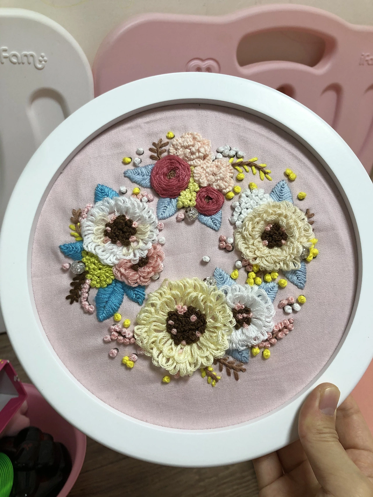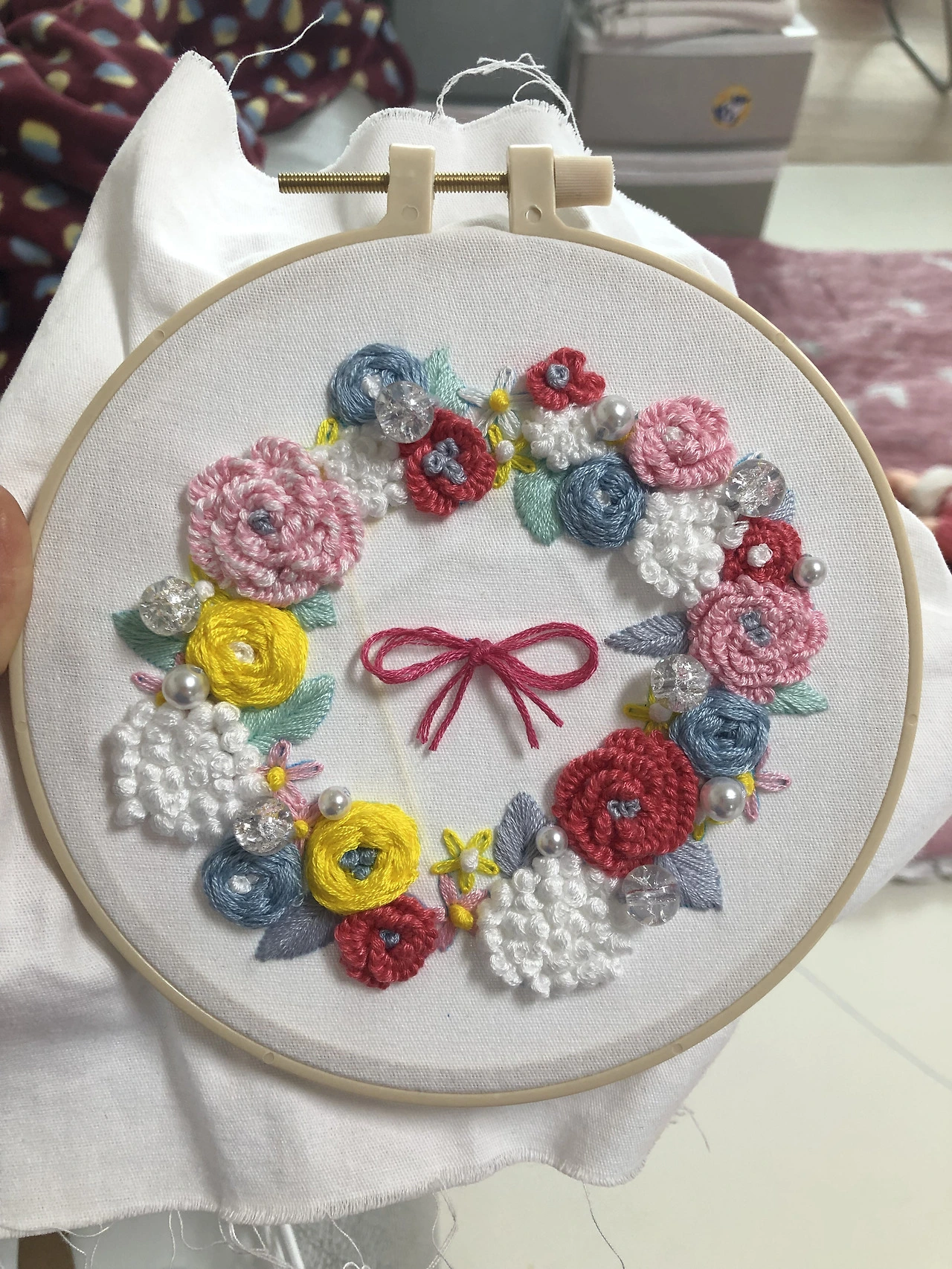 계속되는 관련검색어에는 뜨개질, 종이접기, 고스톱, 자수 등등이 나왔다. 죄다 손으로 하는 것들. 하지만 다행히도 나는 손으로 뭔가 하는 걸 좋아하고 남들이 말해줬듯이 정말로 손재주도 있는 것 같다. 그리고 폭풍 검색하던 중 발견한 아주 고급 수준의 '프랑스 자수' 작품. 거실 한쪽 벽에 액자로 걸린 가로길이 1m는 족히 돼 보이는 작품 안에는 커다란 꽃다발이 있었다.
