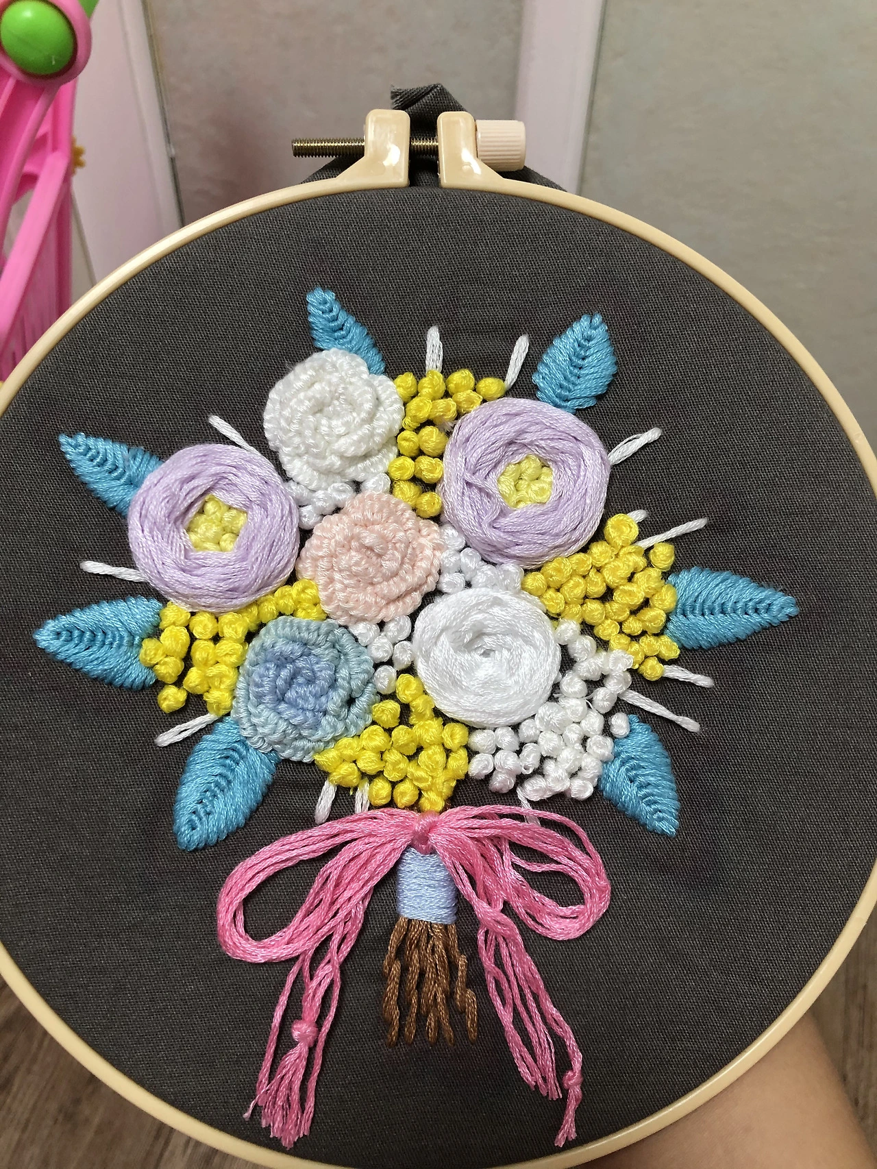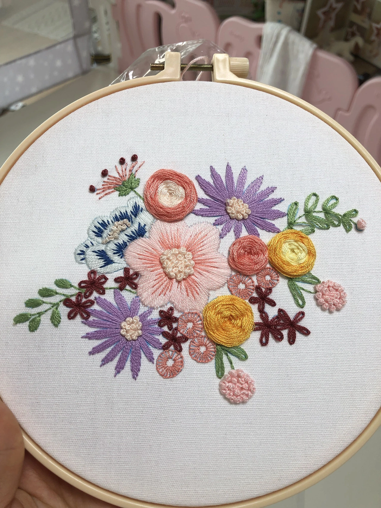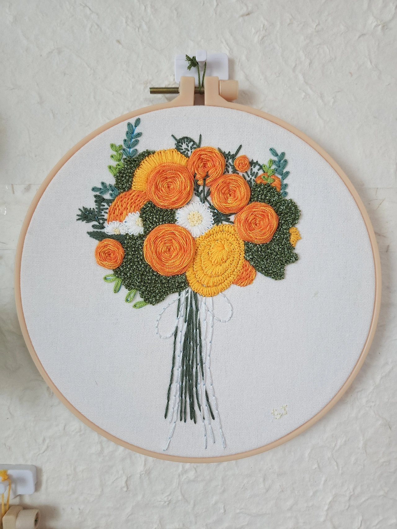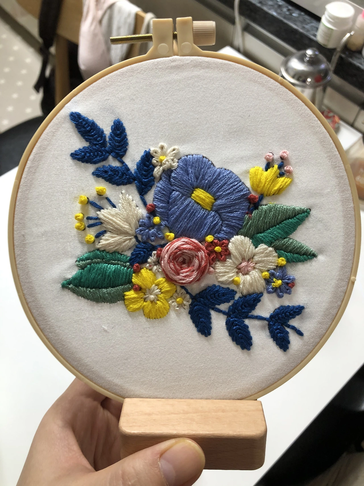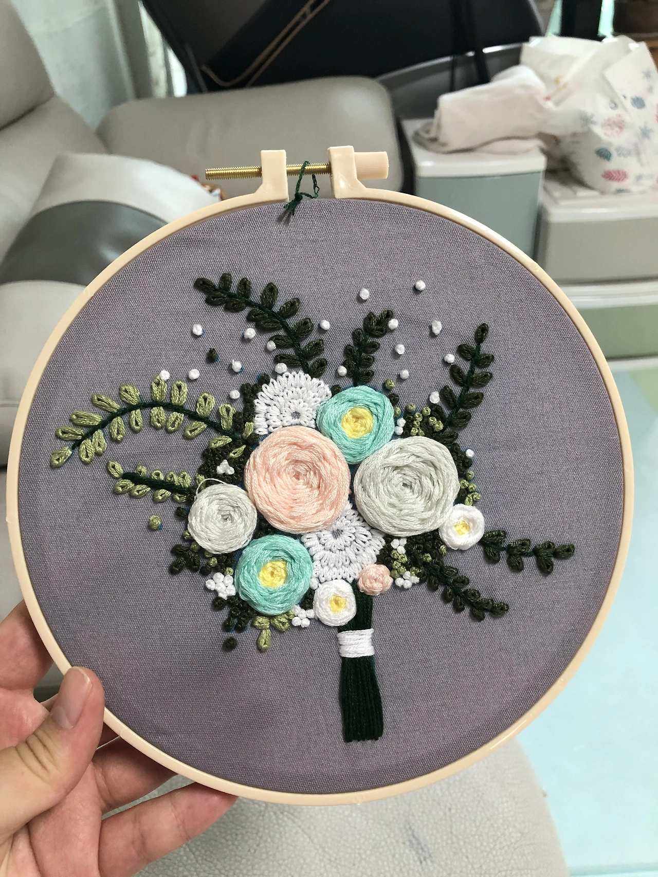 왜 그런 경험 있잖나. 하나에 꽂히면 그것만 확대해서 보이고 주변은 누가 까맣게 칠한 것처럼 검게 보이면서 목표물만 도드라지게 보이는 현상. 그때가 딱 이랬다. 하지만 요리조리 아무리 봐도 이 꽃다발은 내가 넘을 수 없는 벽이라서 초급 수준의 작품을 찾아보기 시작했다. 그리고 또 발견한 아기자기한 자수의 향연들.