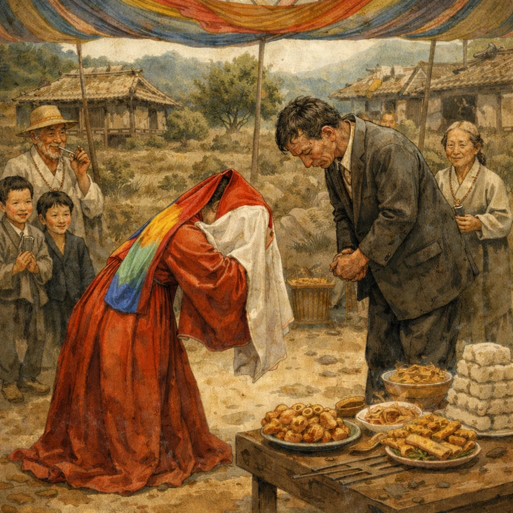 "건~, 건강하고 오, 오래 살라꼬예! 얌~얌생이(염소) 하고, 돼~돼지는 키워서 우~우리 아들 고~고등핵교 보낼람니더!"