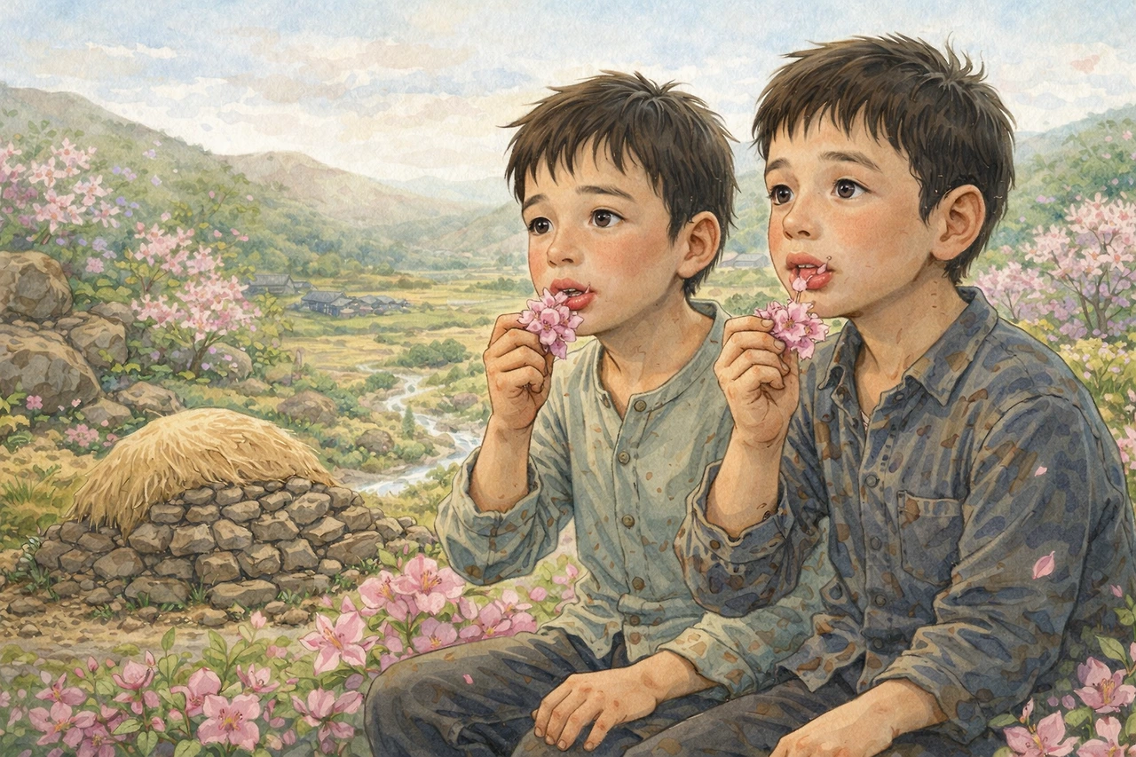 "길수 성가, 오데 갔노? 나도 쪼매이 있으모 갈 낀데, 그때 우리 다시 산으로 들로 뛰어 다니자!"