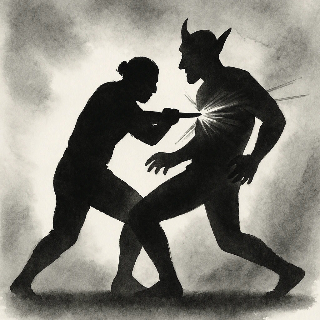 도깨비는 개동씨가 대답할 틈도 주지 않고 하얀 샅바를 개동씨에게 던져 주었어. 개동씨는 오른쪽 다리에 샅바를 매고 심호흡을 하는데, 도깨비는 왼쪽다리에 매듭을 끼고 검은 샅바를 매고 있는거야. 둘이 샅바를 맞잡고 앉았다가 팽팽하게 당기면서 일어서서 둘이 마주 섰어. 개똥이는 이미 호흡이 거칠어지고, 땀도 났어. 개동이가 먼저 배지기를 하려고 도깨비를 뽑아 드는데 꿈쩍도 하지 않는 거야. 다시 오른발 덧걸이를 하려는데, 도깨비는 살짝 발을 뺐어. 오른발 오금당기기를 해도, 안다리후리기를 해도 기술이 들어가지 않았어. 2시간을 지나니 새벽이 되는지 으스름하게 주위가 밝아오는 거야. 개동씨는 힘이 다 빠져서 서 있을 힘조차 없었어. 그때 도깨비가 뒤집기를 하려고 몸을 숙이고 파고 드는데.."이제 죽었구나" 생각하는 순간, 친구 시춘이와 씨름을 하면서 나눴던 말이 생각났어.