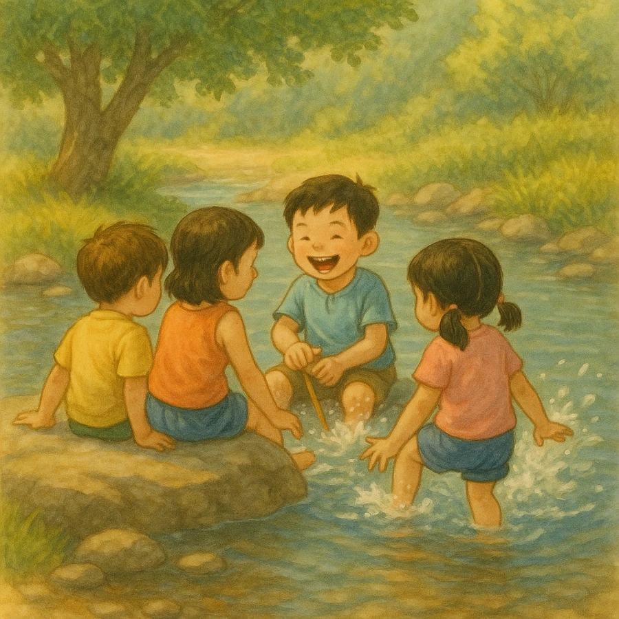 그리고 다음날, 종아와 율이, 복아와 오야, 자야와 순이는 함께 용돈을 모두 모아 십리과자(잘 녹지 않아서 10리길을 먹을수 있다고 붙여진 사탕)를 5개나 샀습니다. 동무들이 어깨동무를 하고 걷는데, 시원한 바람이 오솔길을 따라 반석골까지 함께 불어가는 것 같았습니다.