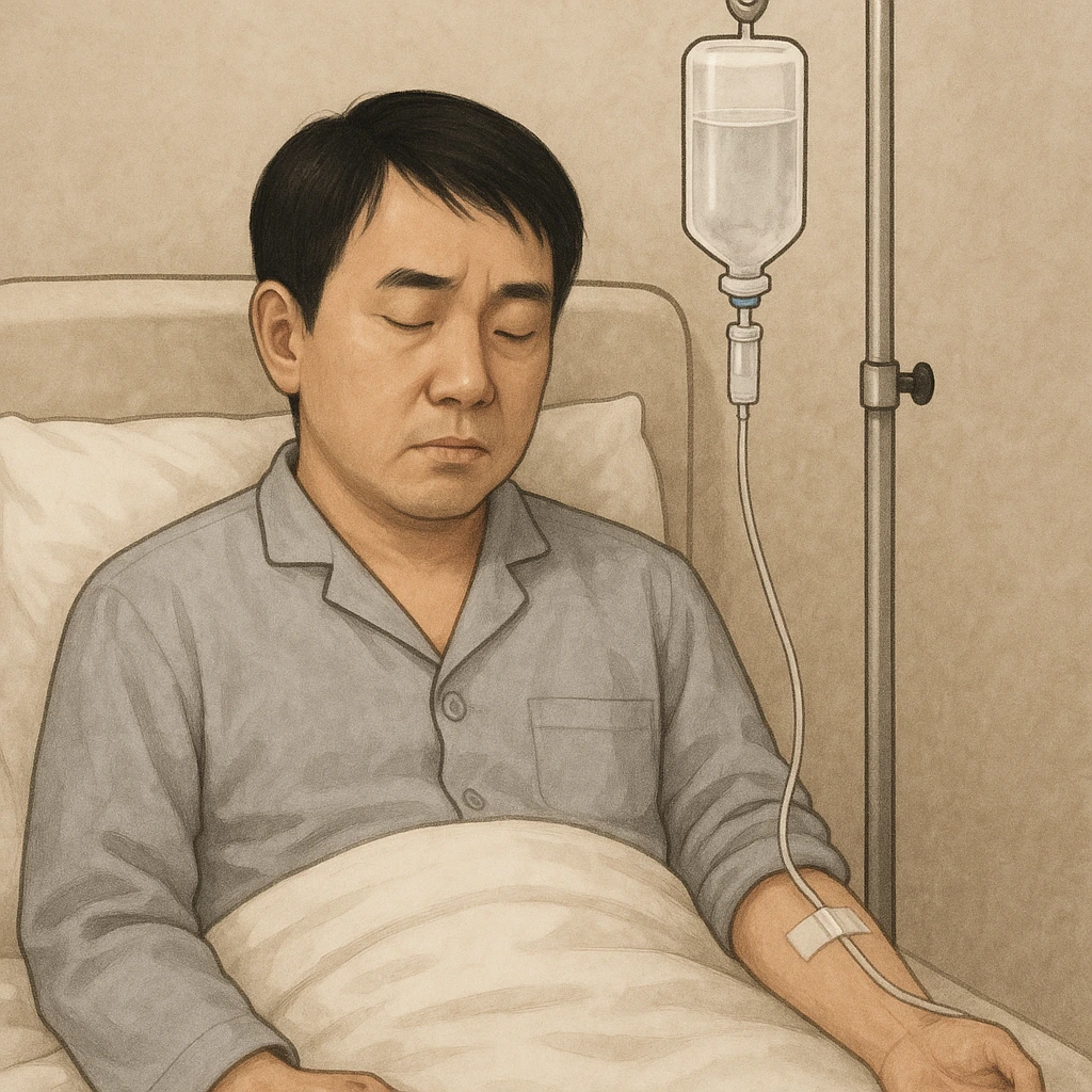 엉덩이 주사와 링거를 맞고