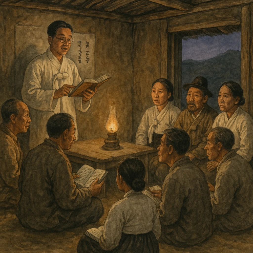 "그 어려운 세월 중에도 사람들은 글을 배웠단다. 너는 우리 동네에 야학이 있었다는 말을 들어 보았느냐?"
