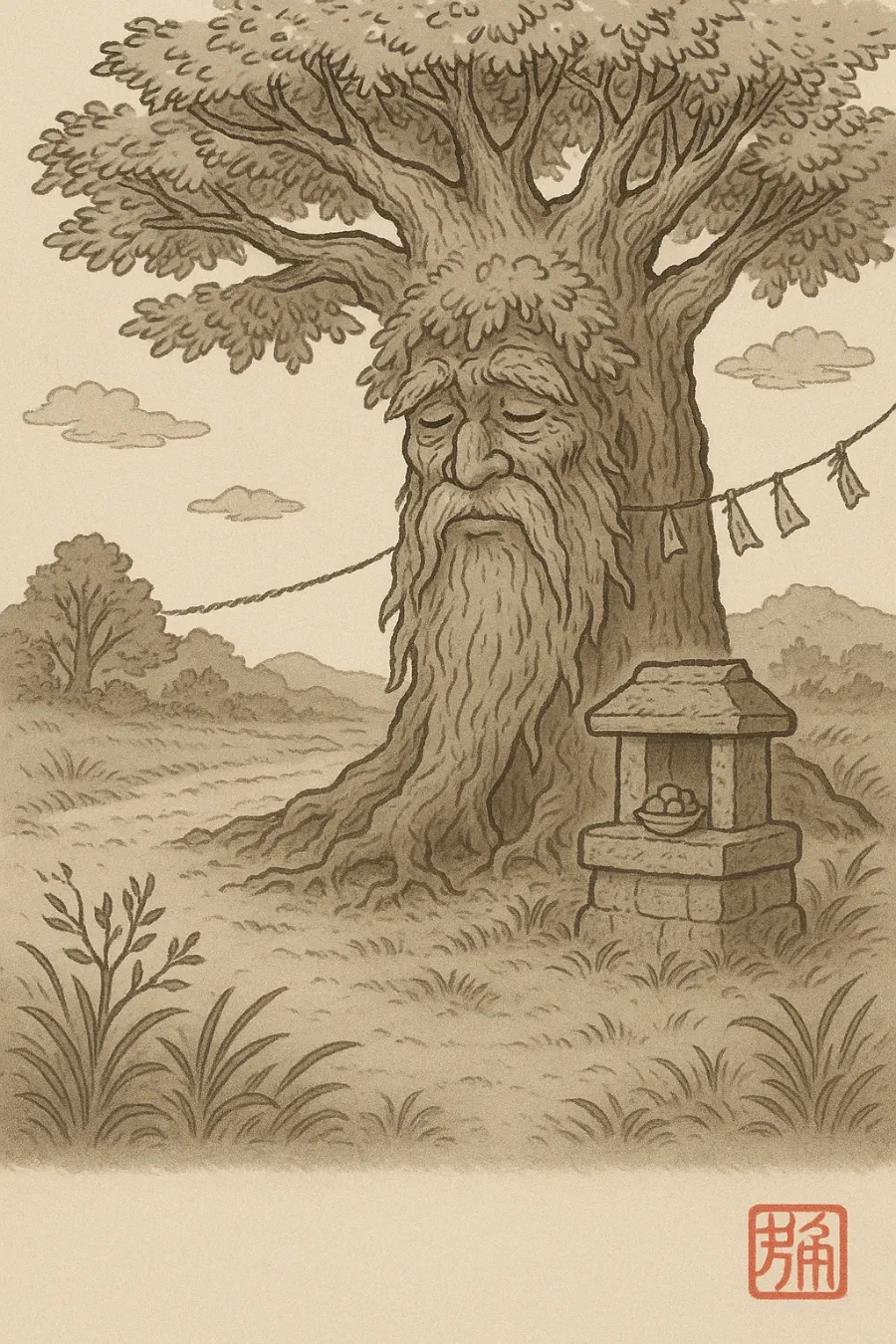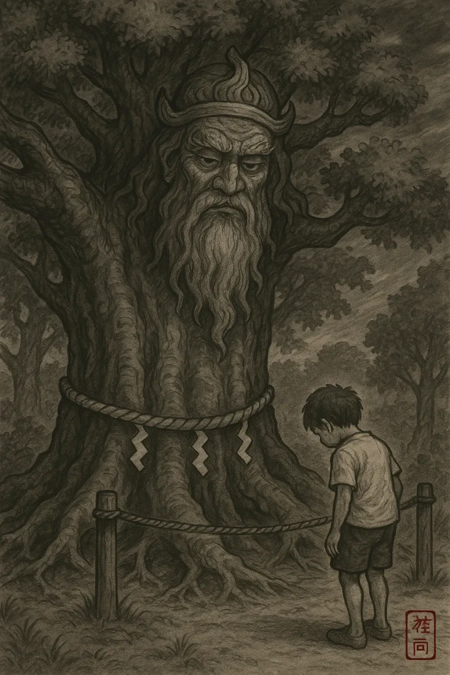 "그 곳에는 신이 계신단다. 그래서 사람들이 가까이 가지 못하게 새끼 줄로 금줄을 쳐 놓지 않았더냐?"