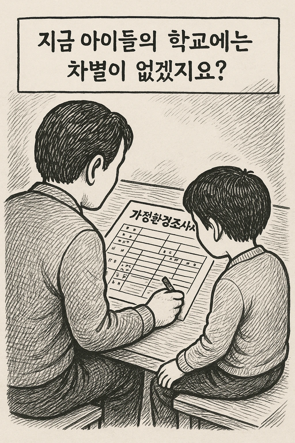 부모의 직업이나 학력을 파악하는 것이 학생을 지도하는 데 과연 얼마나 도움이 될까요? 그 선입견이 학생을 바라보는 데 차별을 가져오지는 않을까요? 만약 1%라도 그럴 가능성이 있다면, 매년 반복하는 '가정환경조사서'를 아예 없애는 것은 어떨까요?