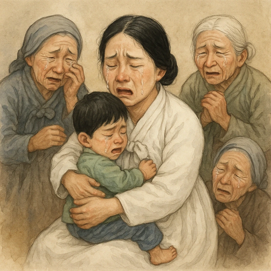 곱단이 아지매는 마당 뒤켠에 서 있던 일곱 살 돌이의 볼을 쓰다듬다가, 풀썩 주저앉아 하염없이 눈물만 흘리고 있더라.