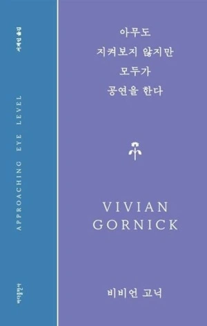 비비언 고닉의 ‘아무도 지켜보지 않지만 모두가 공연을 한다.’는 타인과의 관계에서 생기는 감정이나 느낌, 그리고 반성을 솔직하고 과감하게 표현한 글입니다.(같이 있으면 우리 사이에는 긴장이 피어올랐지만, 혼자 있을 때면 극심한 외로움 속으로 곤두박질쳤다.<69>, 우리는 연민도 슬픔도 없이, 젊고 쌀쌀맞은 얼굴로 마리를 쳐다보았다.<123>) 작가는 자신이 보거나 경험한 사람들의 말과 상황을 깊은 사색을 통해 자신만의 언어로 표현하고 있습니다. 문장은 섬세하고 유려하며 내용은 마치 잠언 같습니다. 총 7개의 글로 구성된 작품에서 작가는 홀로 공연을 하는 인간의 외로움과 상호작용에 대해 이야기하고 있습니다. 그리고 결과적으로 여성이며, 페미니스트인 자신의 사회적 위치에 대해 밑바닥부터 단단해질 수 있는 방법과 긍정으로써의 관계형성을 제안하고 있습니다.