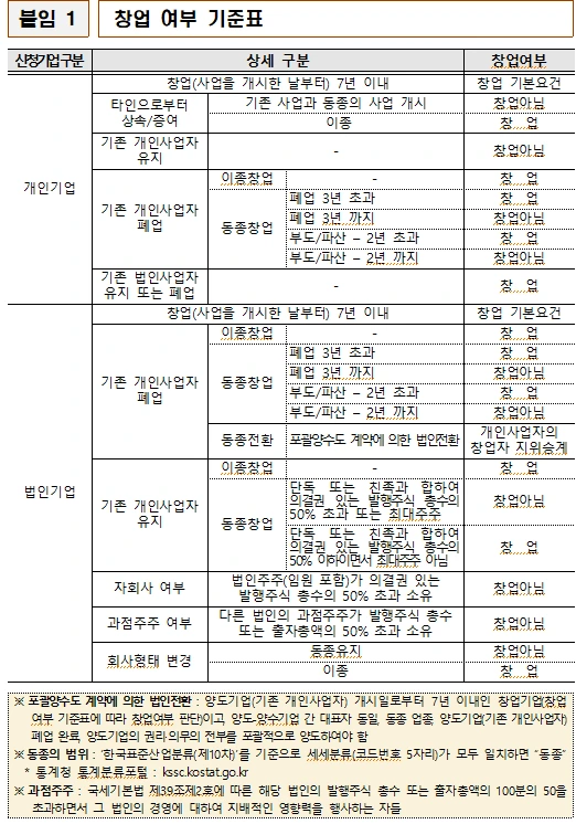 위에서 말하는 창업여부 기준이 따로 존재하기 때문이다.
