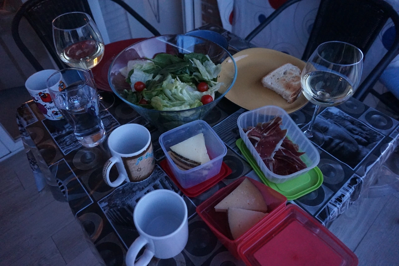 <사진 3> 스페인에서의 한 끼. 배불러 죽겠지만 먹고 싶은 디저트를 다회용기에 포장해 와서 와인안주로 곁들이고 있다.
