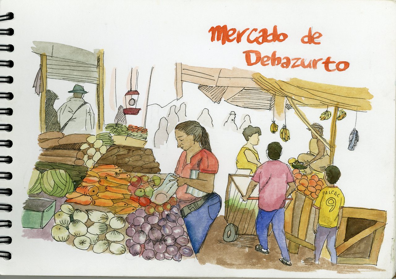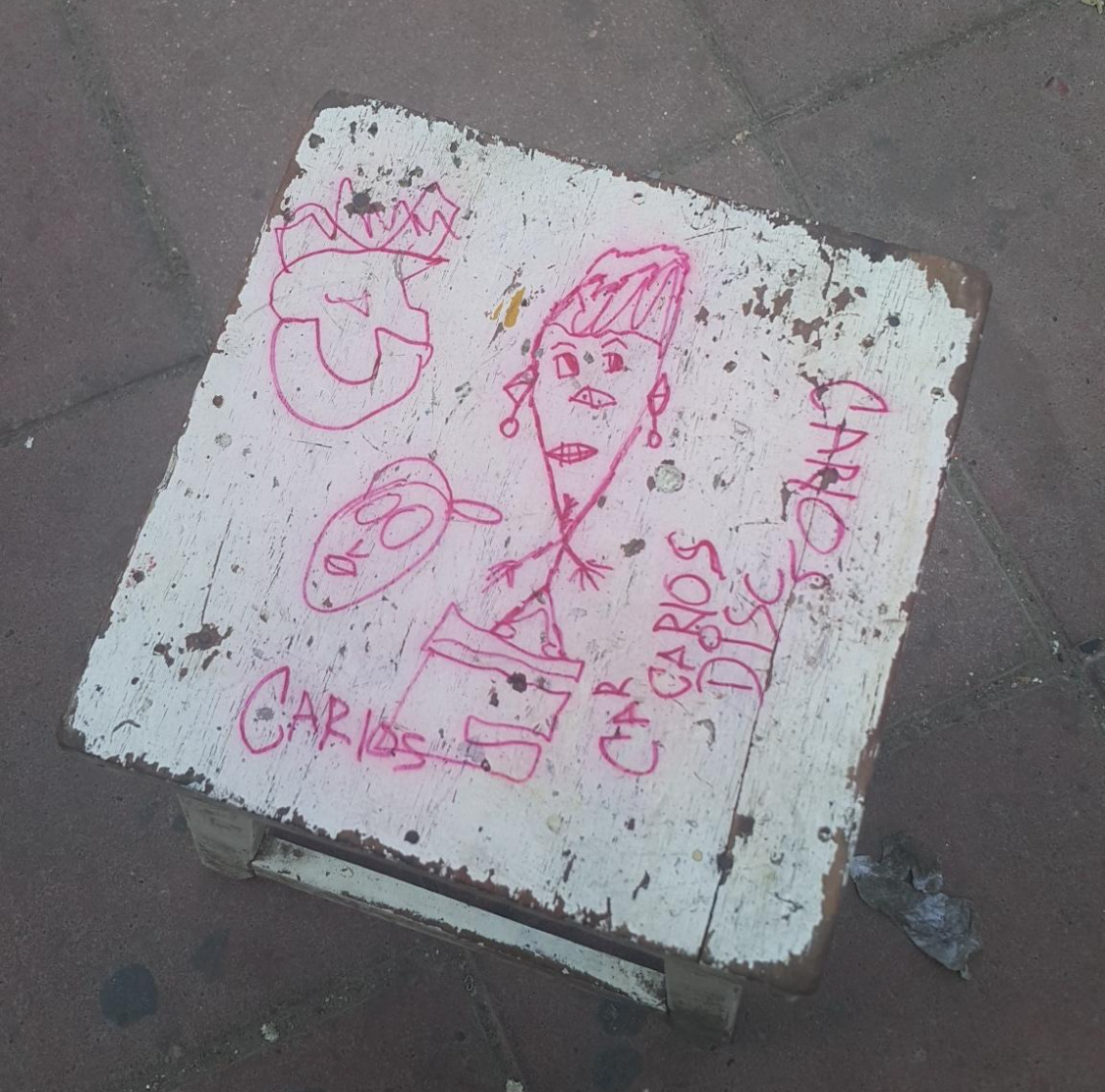 시장에서 무료한 시간을 보낸 어느 꼬마의 그림. 여기에도 까를로스 이름이 등장한다