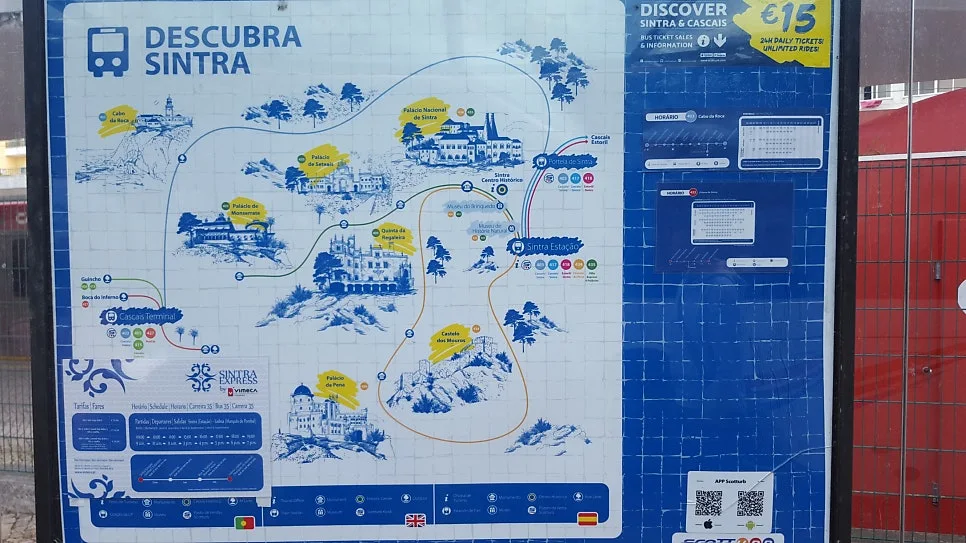 리스본의 신트라 역에서 호가곶을 가는 안내도