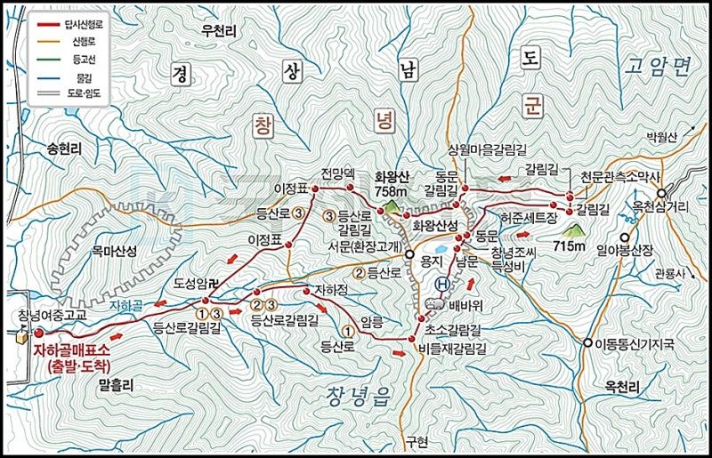 화왕산만 짧게 오르내린다면 1코스로 올라 3코스로 내려가는 게 가장 좋아 보인다.