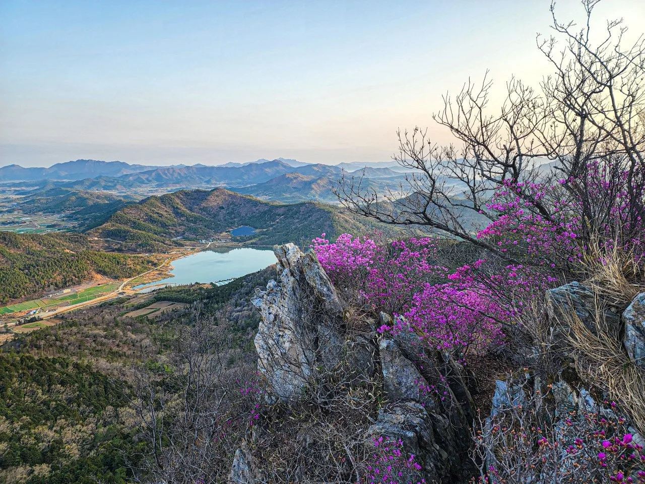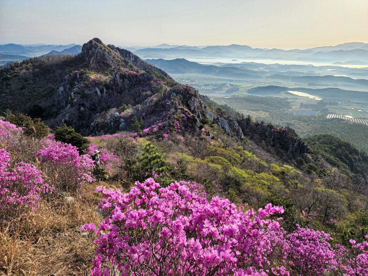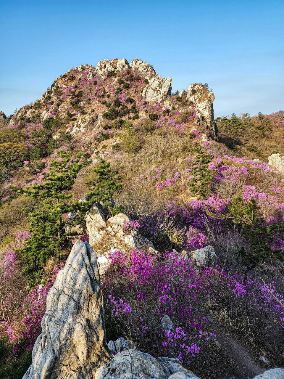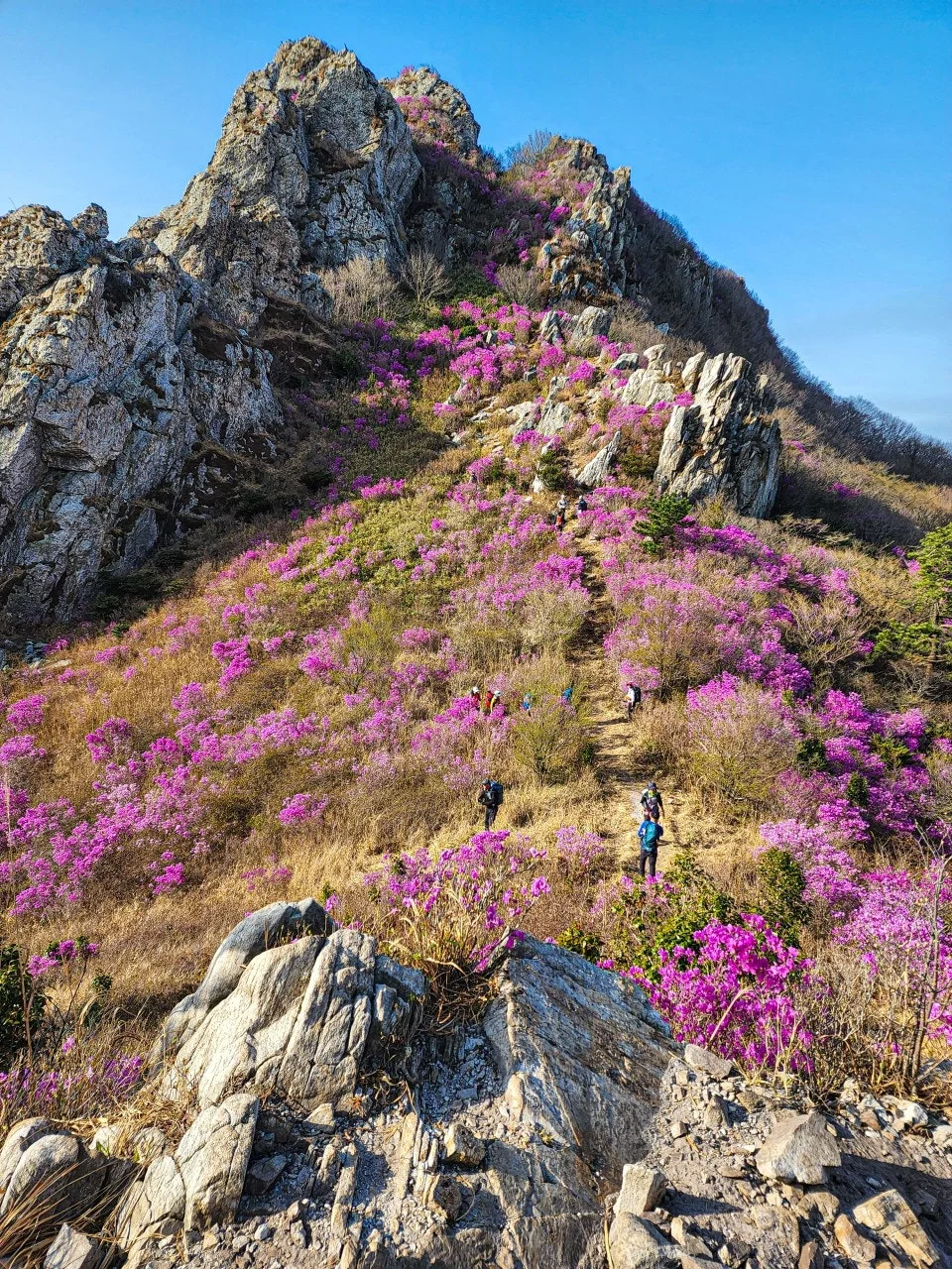 멋진 바위와 가득히 피어난 진달래로 유명한 덕룡산.