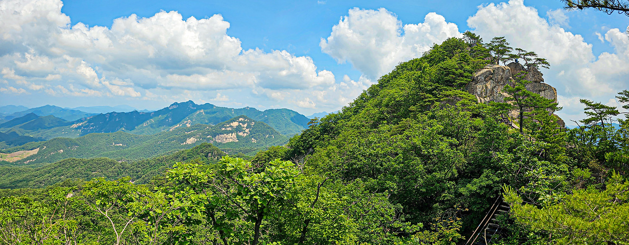 조령산 최고의 전망이라고 해도 손색없는 풍경이 펼쳐진다. 이 지점에서 보는 신선암봉 풍경은 정말 멋졌다. 이화령에서부터 정상까지 빽빽한 숲사이를 걷다 드디어 펼쳐지는 풍경에 넋을 놓고 감상하게 된다. 최단코스로 인증만 하고 가더라도 정상에서 5분도 안 걸리는 지점이니 가능한 여기까지는 와 보면 좋을 것 같다.