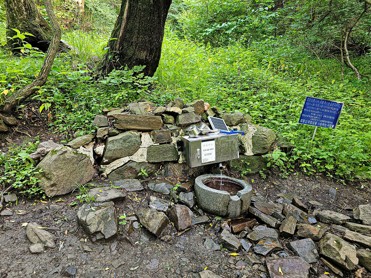 최근 숲 속에 있는 약수터라 해도 음용으로 부적합해서 폐쇄되는 곳이 꽤 많은데 조령샘은 음용이 가능한 모양이다. 조령샘 이후로 식수를 보충할 곳이 없다. 정상만 다녀온다면 모를까 신선암봉을 지나간다면 여기서 충분히 보충해 주면 좋다.