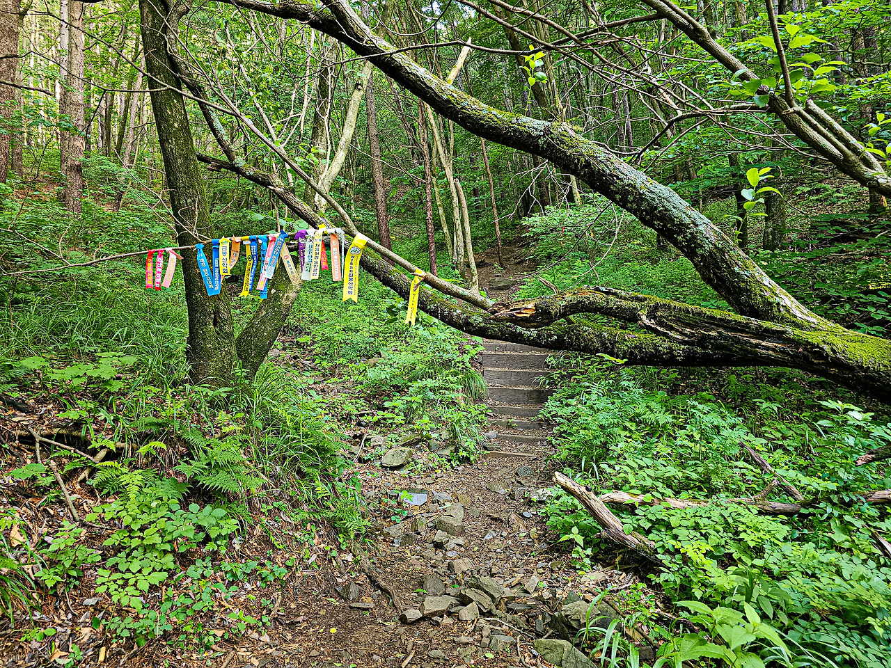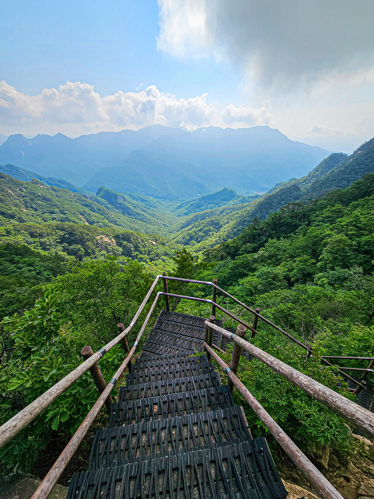 중간 즈음 나오는 계단이 아주 가파르고 길게 주 능선까지 이어져 있다.