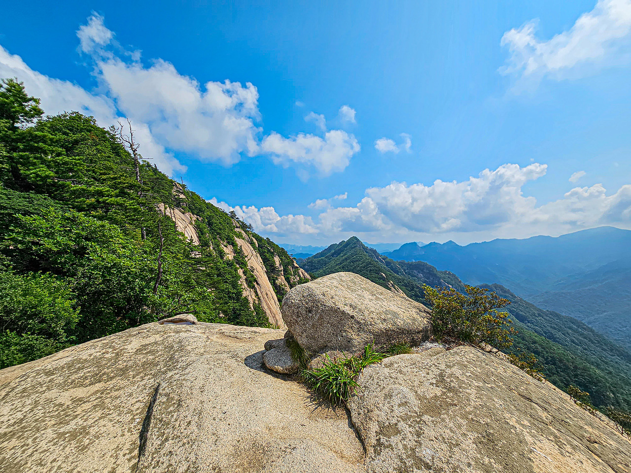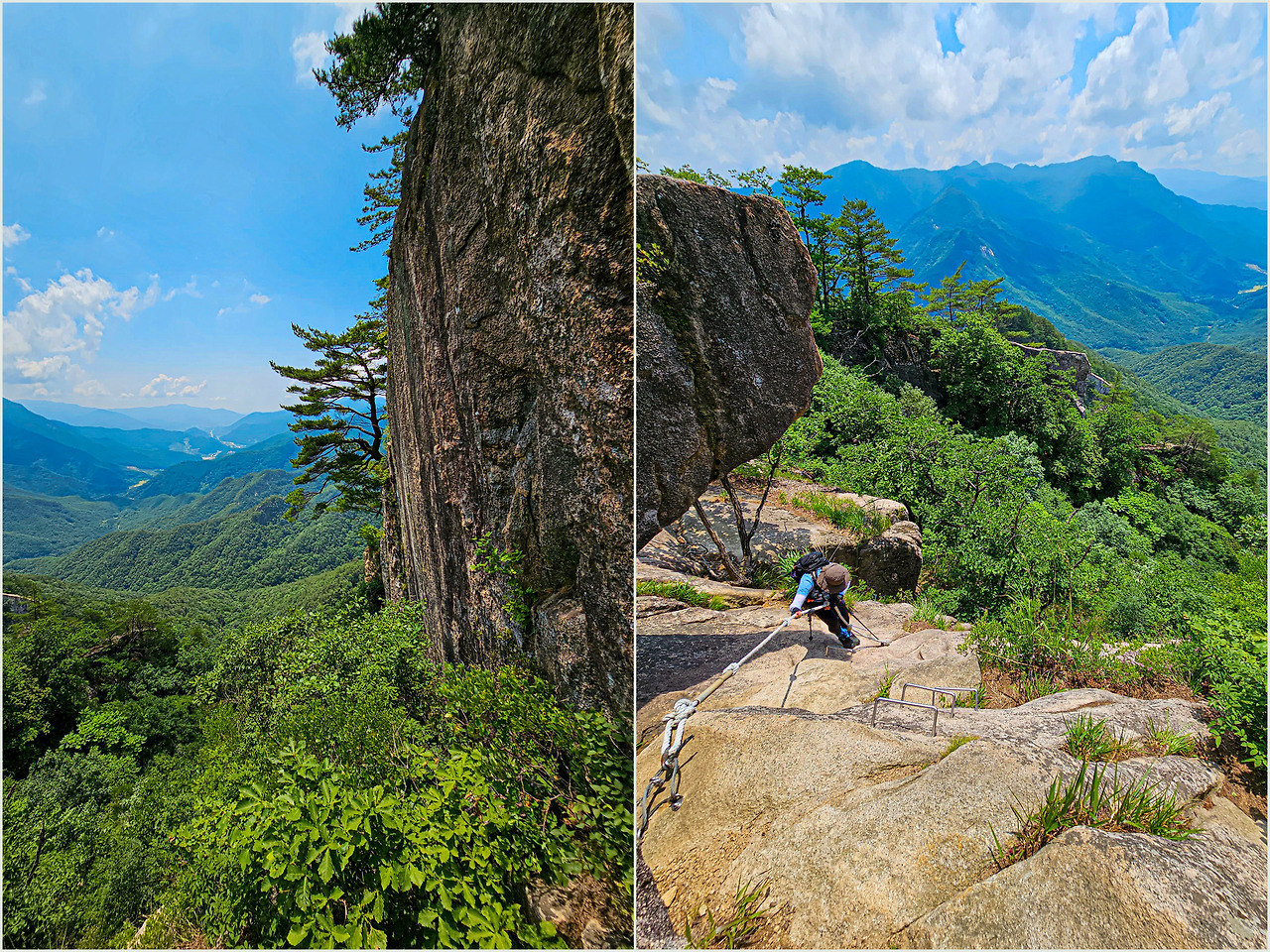 923봉 뒤편 등산로는 급격히 험해진다. 로프 구간이 몇 군데 있지만 가장 아찔했던 구간이 여기가 아닐까 싶다. 풍경이 멋져서도 기억에 남는 구간이었던 것 같다.