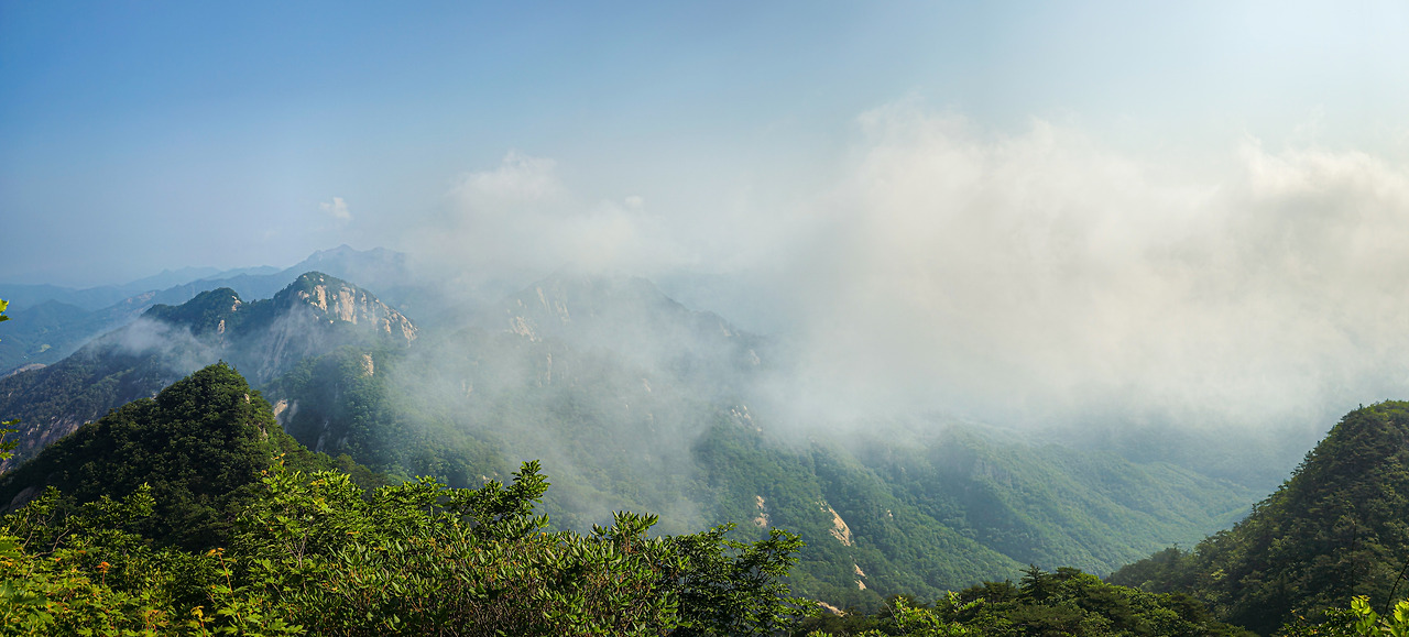 풍경이 너무 멋져서 한참을 보게 되었다. 산을 가리고 있던 구름이 옅어지며 신선암봉의 산체가 더 또렷해진다.