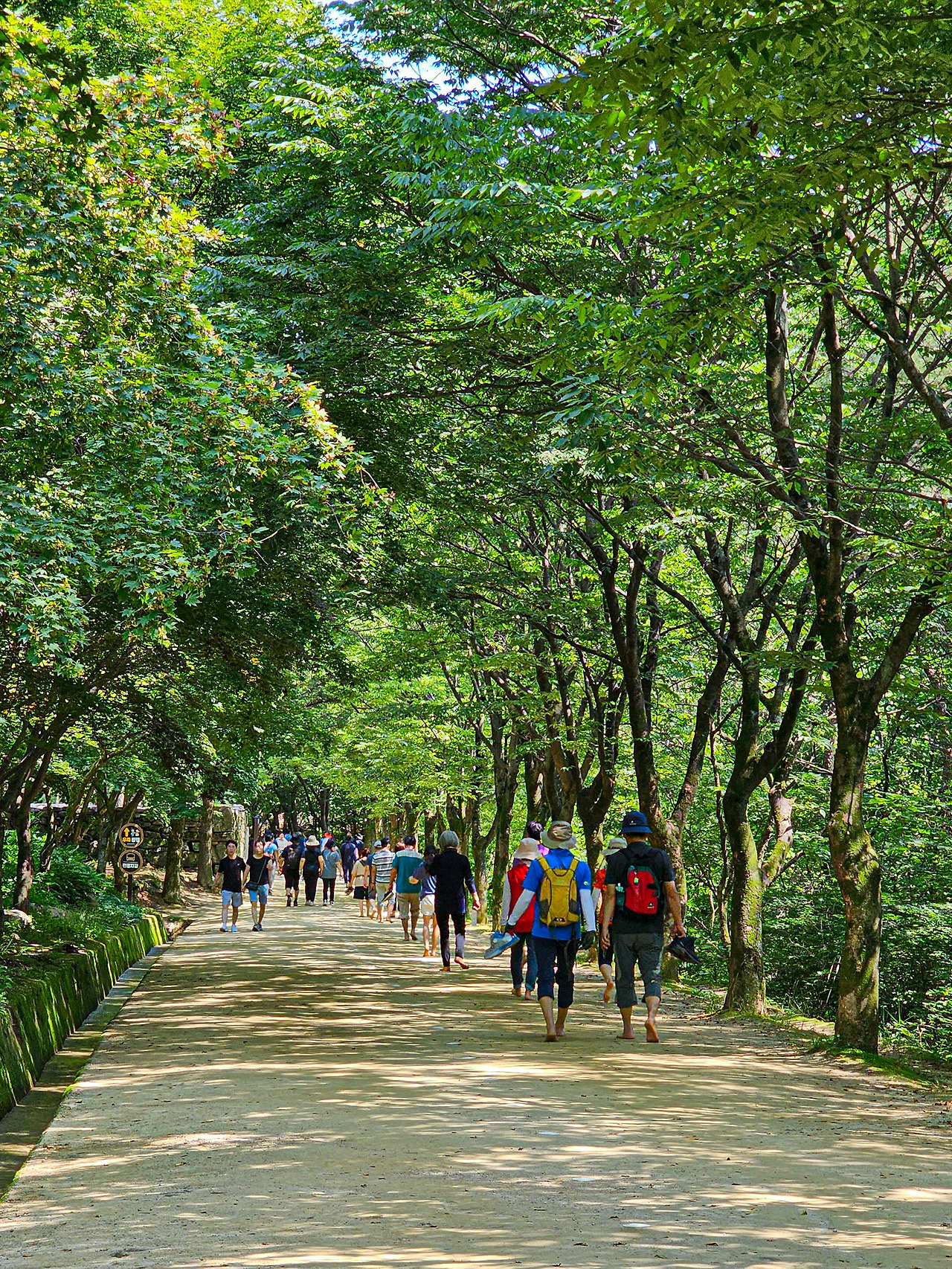 제1관문을 거의 다 왔다. 흙으로 잘 다져진 길을 따라 맨발로 걷기를 하는 사람도 많았다. 험한 하산 길 후에 평탄한 길을 걸으니 모든 산행이 한편이 꿈같이 느껴진다. 정말 좋은 꿈을 꾸다 악몽으로 꿈을 깬 느낌이랄까.