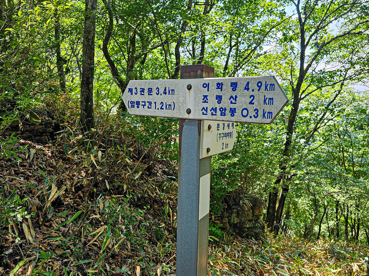 처음 세운 계획은 깃대봉까지 갔다가 제3관문으로 하산이었다. 그런데 생각보다 더운 날씨와 가파른 오르내림을 이어오니 체력이 마음같이 되지를 않았다. 깃대봉을 가는 길 중간중간 몇 차례의 갈림길이 있으니 가는 도중 체력을 봐서 하산하기로 계획을 변경했다.