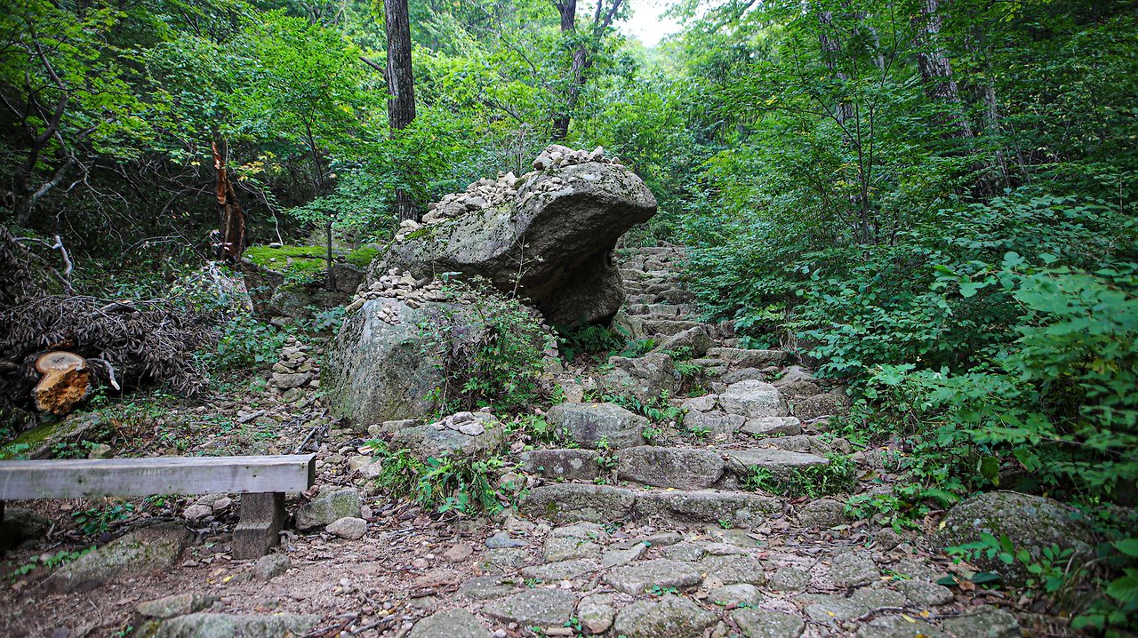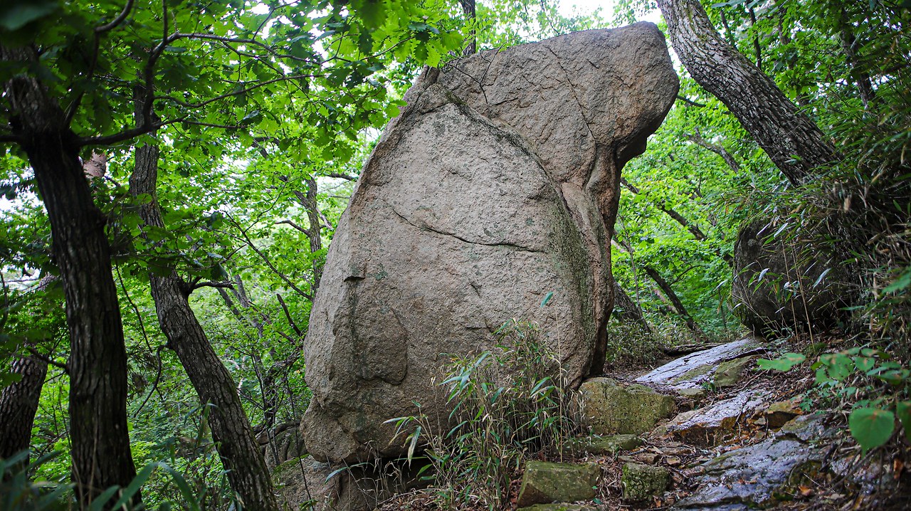 숨쉬기 벅찬 몇 번의 오르막을 더 오르면 두꺼비를 닮은 바위가 나온다. 작은 돌들을 쌓아놔서 더욱 두꺼비를 닮아 보인다.
