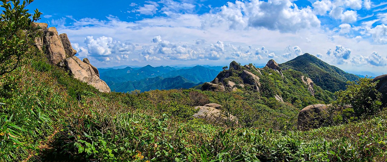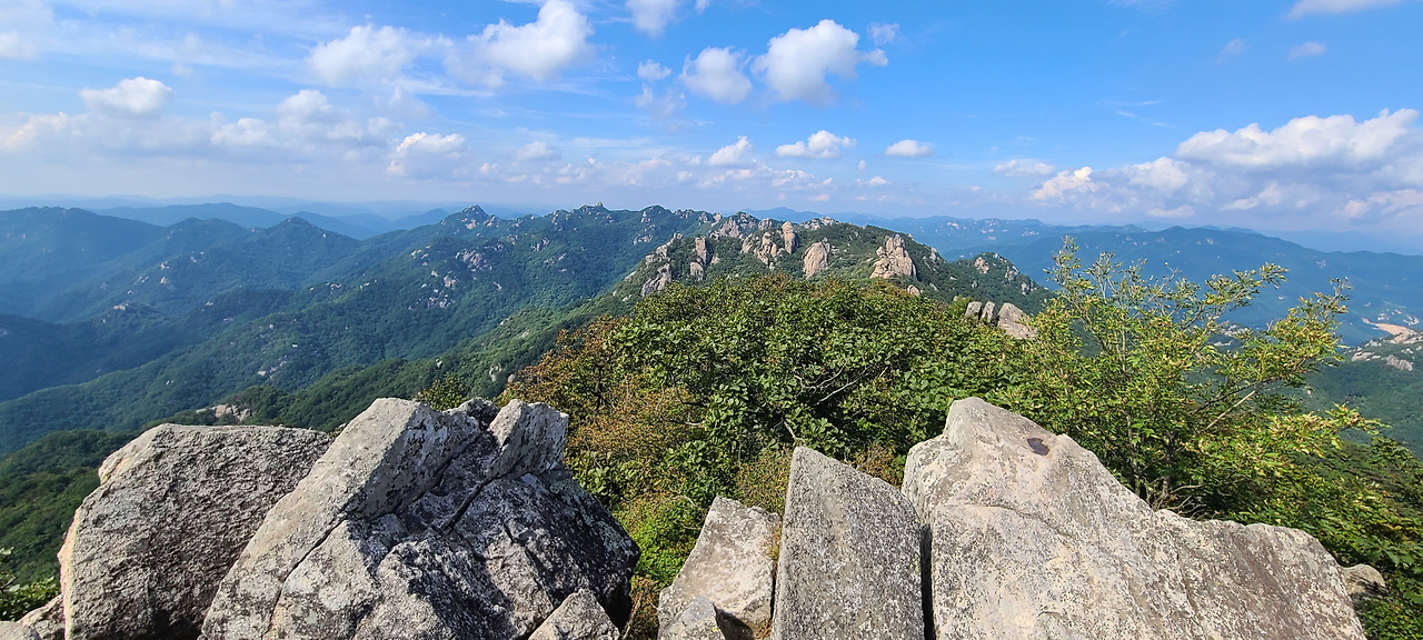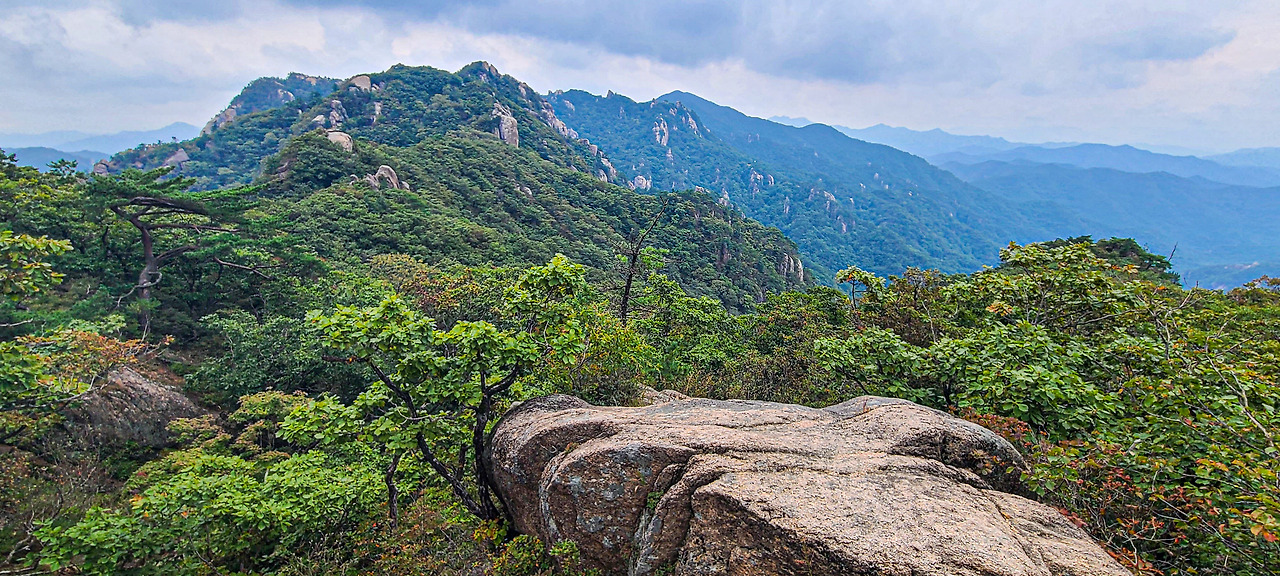 청법대 근처에서 보는 천왕봉 전망. 문장대에서 보는 풍경도 좋지만 청법대에서 보이는 이런 풍경도 좋다. 최고의 고지에서 내려보는 것만큼이나 산등성과 비슷한 높이에서 펼쳐지는 산등선을 보는 것도 매우 좋아한다.