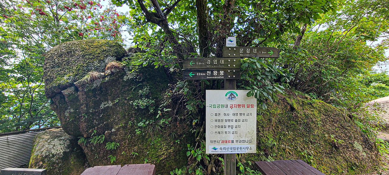 3km가 조금 안 되는 세조길을 따라 세심정까지 가면 갈림길이 나온다. 여기서 천왕봉으로 갈지, 문장대로 갈지 결정해야 된다. 습관적으로 문장대로 올랐다.