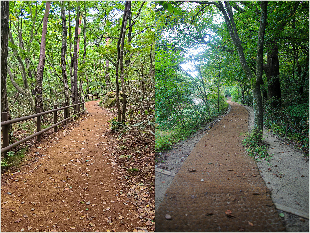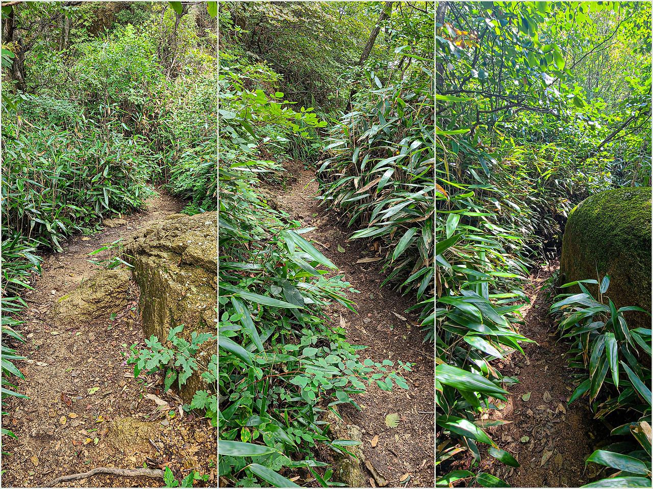 키만 한 조릿대로 둘러싸인 길은 전망은 없지만 숲 속을 홀로 걷는 느낌을 주는 매력이 있다. 다만 반팔이나 반바지 차림으로 지나가면 팔다리를 계속 쓸어대는 조릿대가 불편할 수도 있다.