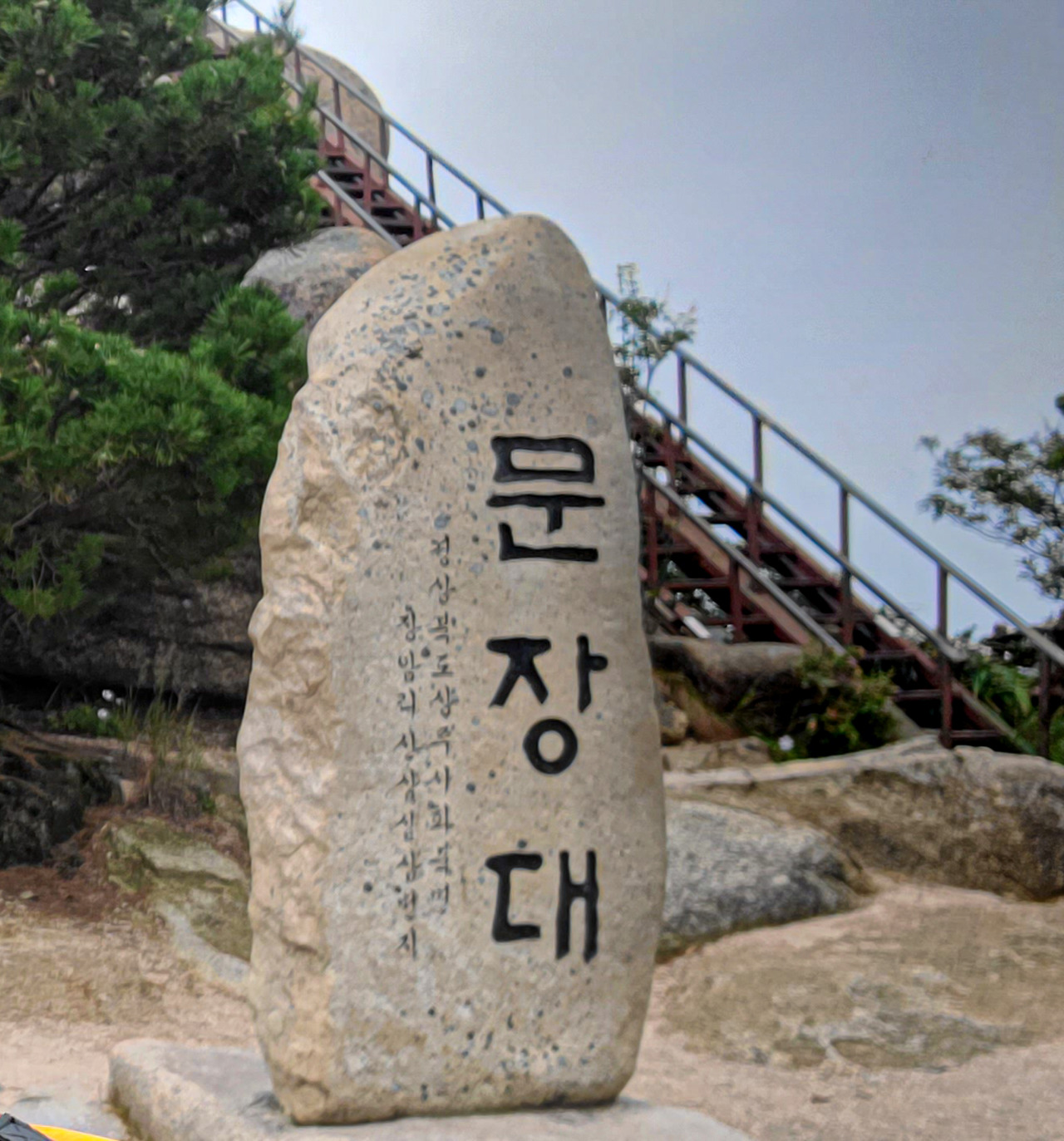 쉼터자리에서 200m를 오르면 문장대가 나온다. 속리산의 정상인 천왕봉 정상석과 비교하면 문장대 정상석이 더 정상석 같다.