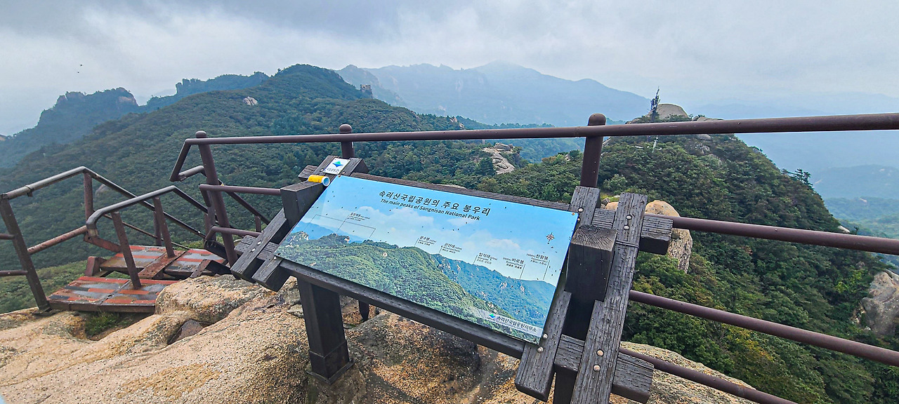 문장대 뒤로 보이는 계단으로 올라가면 문장대 전망대가 나온다. 문장대 전망이 워낙 훌륭해서 문장대만 올랐다 내려가는 사람도 많다.