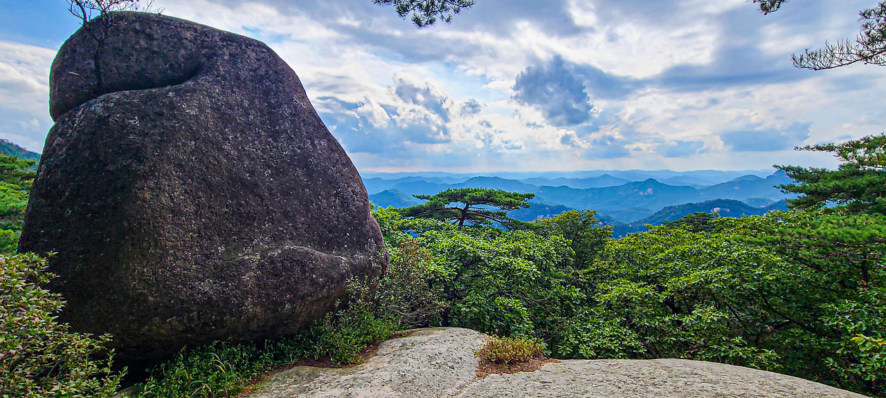 문장대 전망대에 오르면 천왕봉과 반대편 묘봉까지 속리산의 멋진 산세가 모두 보인다. 천왕봉에서는 보는 속리산은 조금 멀찍이 보는 느낌이라면, 문장대에서 보는 풍경은 속리산을 아주 가까이 보는 느낌이 든다. 기세등등 솟아오른 바위와 암릉이 가깝게 역동적으로 보인다. 다만 오늘은 날씨가 도와주질 않는다. 구름에 가려져 그나마 가까운 곳만 보인다. 구름이 금방 걷힐 것 같지 않았다.
